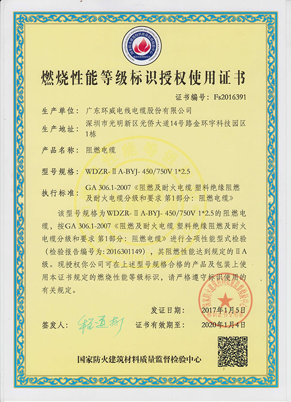 WDZR-IIA-BYJ 2.5 Flame Retardant Certificate for Public Places_2